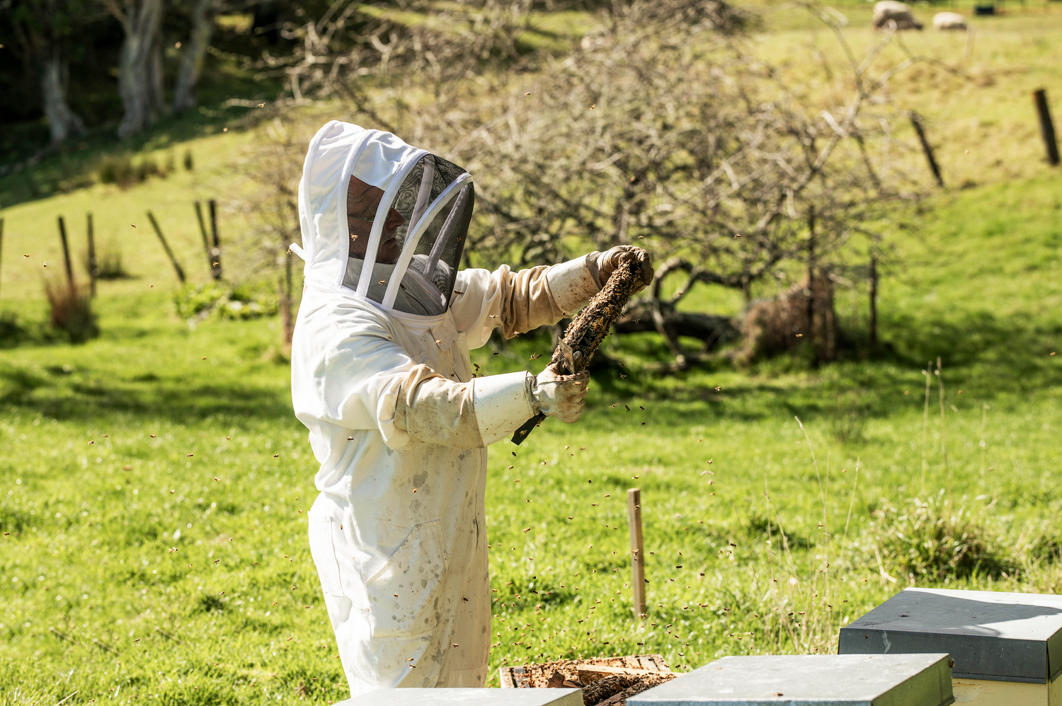 Our bees fertilise the flowers on our trees in Spring (Sep-Nov).